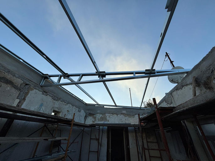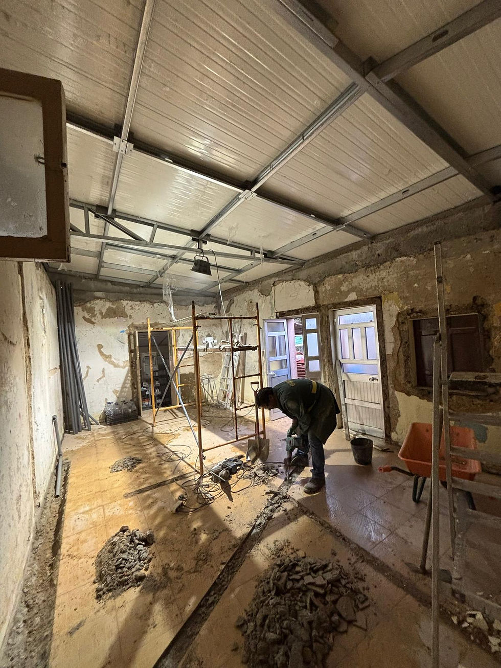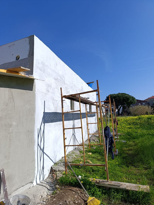 Os trabalhos iniciaram-se com demolições controladas, permitindo a reorganização dos espaços e a correção de patologias existentes. Foi criada uma nova rede de águas, inexistente anteriormente, garantindo funcionalidade, segurança e conformidade com as normas atuais. Paralelamente, procedeu-se à construção de um novo telhado, melhorando o desempenho estrutural e o isolamento do imóvel.
